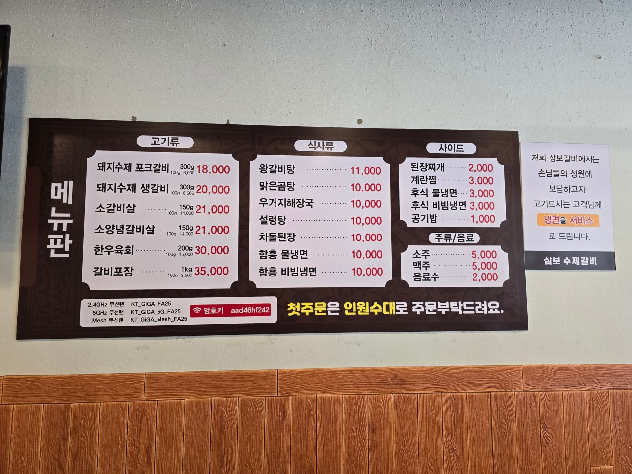 | 돼지수제생갈비 | (300g) 20,000원 |