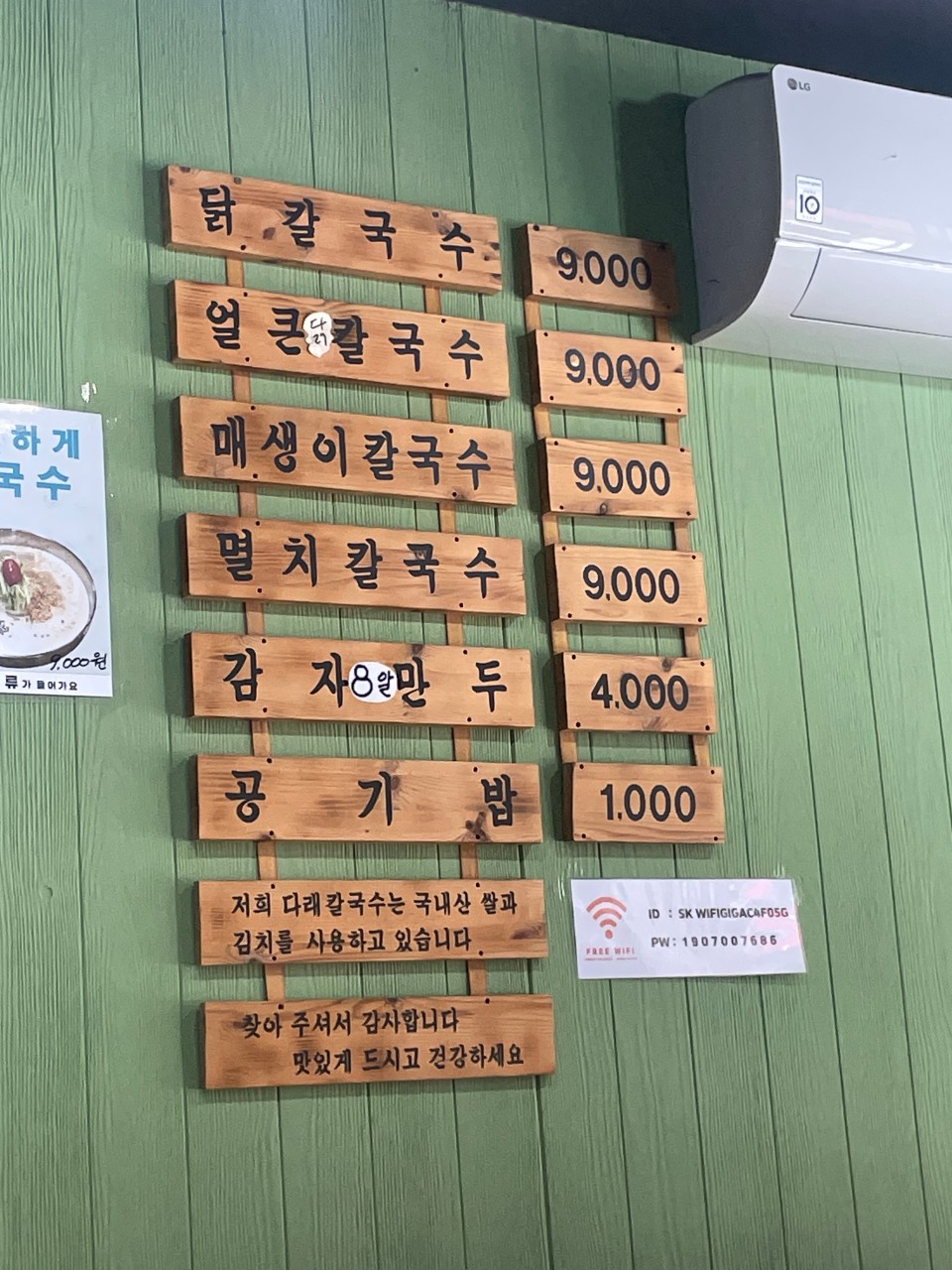 | 멸치칼국수 | 9,000원 |