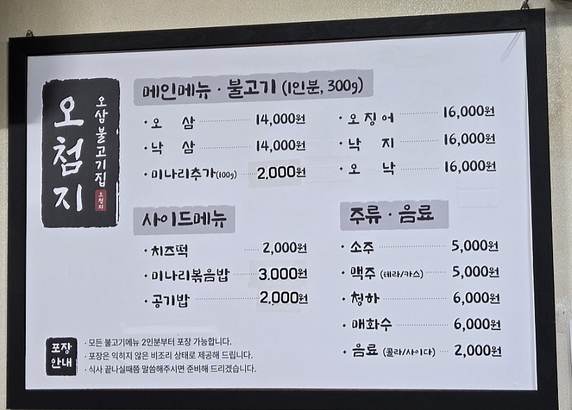 | 오삼불고기 | 14,000원 |